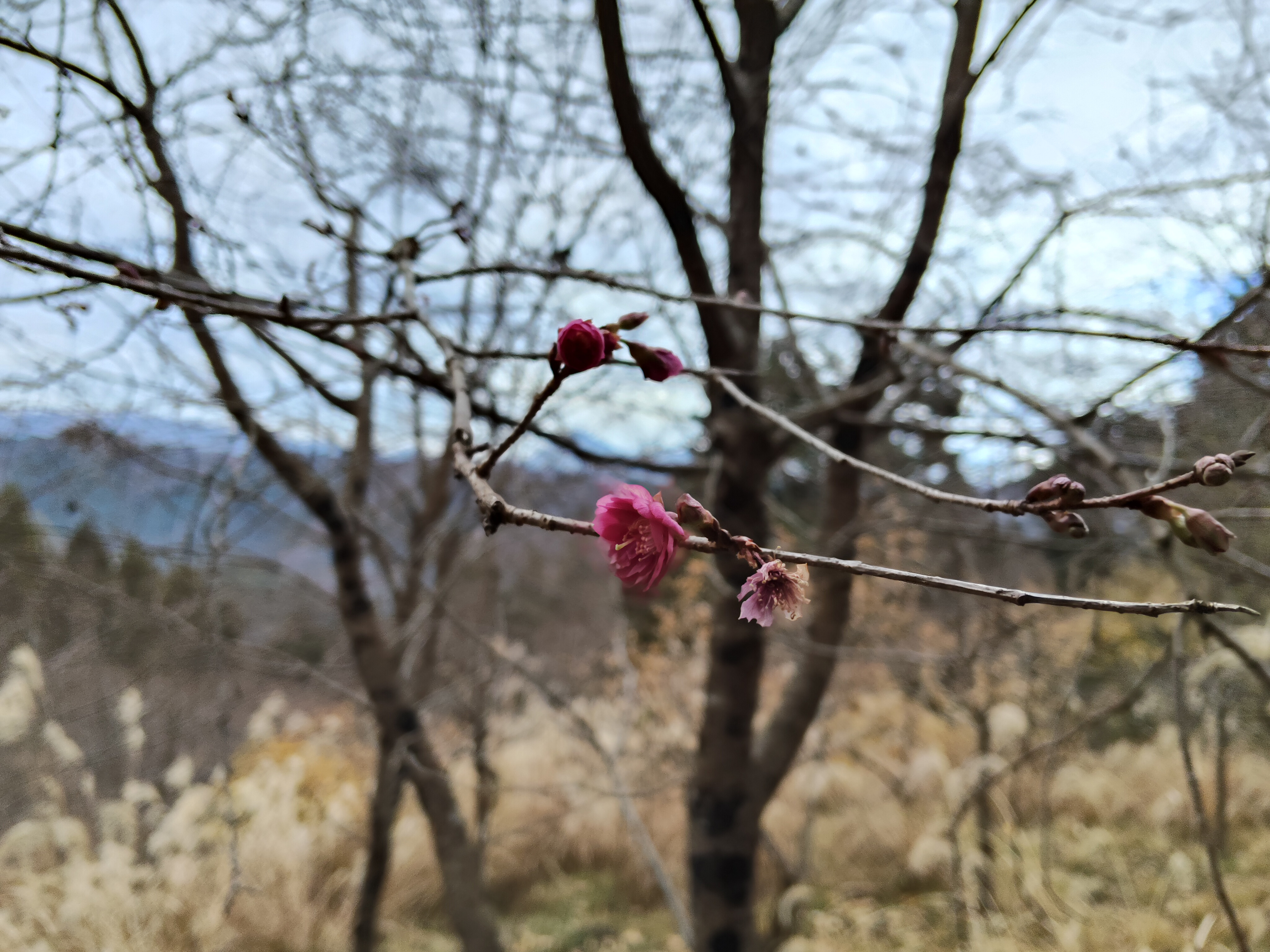 四阿屋山の下山道、梅ほころぶ日向道。