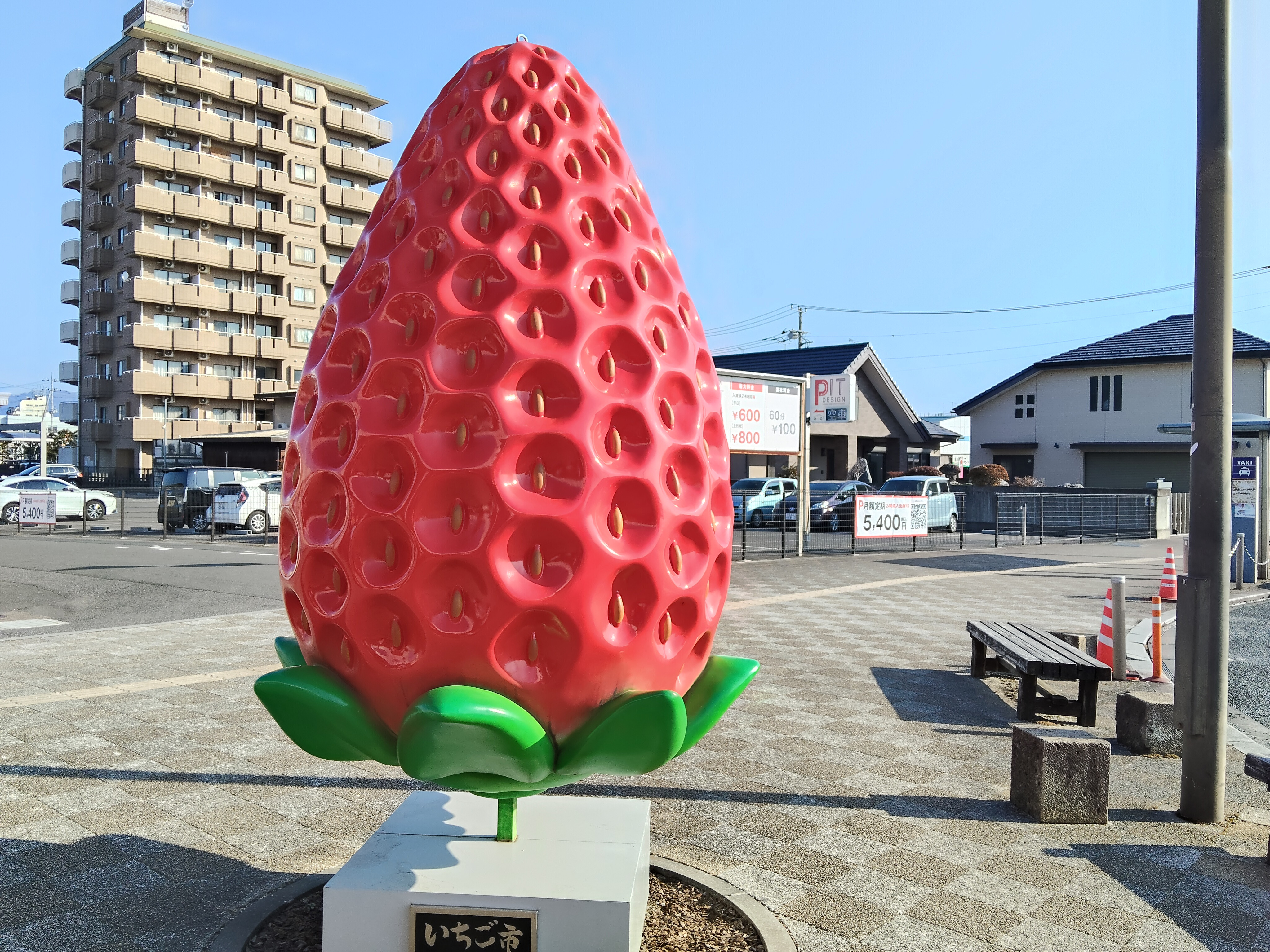 新鹿沼駅では巨大いちごがお出迎え。